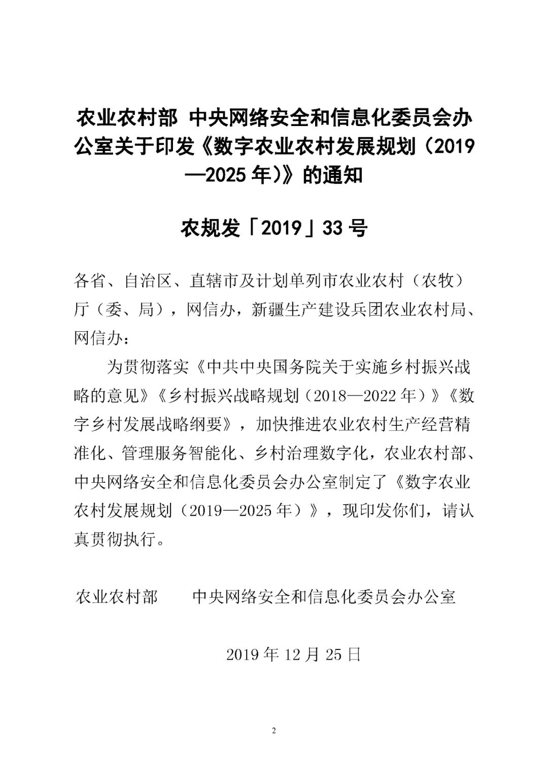 两部门印发数字农业农村发展规划(2019—2025年)