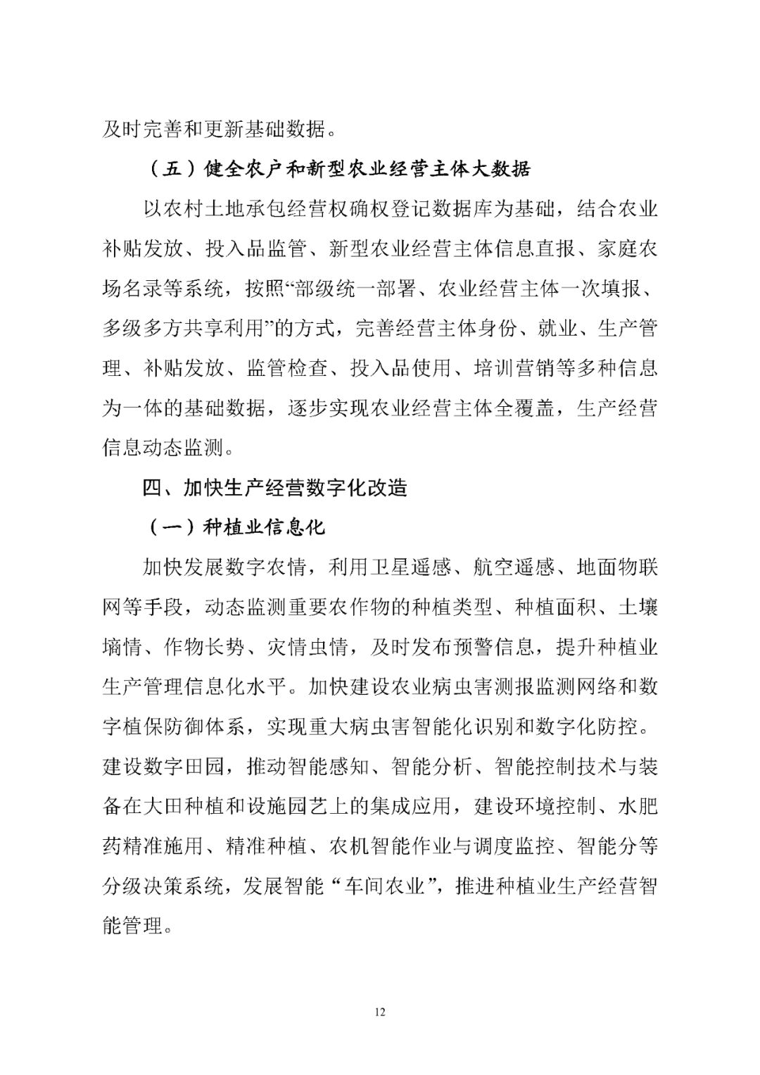 导 读国家对于现代农业、加快转变农业发展方式,进行了一系列的改革,农业的相关政策将进入密集发布期。从规划来看,今年的一号文件的重要方向仍有可能是智慧农业与农业信息化,农业金融也有望成为重点。到2025年,数字农业农村建设取得重要进展,有力支撑数字乡村战略实施。农业农村数据采集体系建立健全,天空地一体化观测网络、农业农村基础数据资源体系、农业农村云平台基本建成。发展数字农业,首重点则是用新一代的信息技术推动农业的数字化升级。 农业农村部 中央网络安全和信息化委员会办公室关于印发《数字农业农村发展规划(2019-2025年)》的通知 农规发「2019」33号 各省、自治区、直辖市及计划单列市农业农村(农牧)厅(委、局),网信办,新疆生产建设兵团农业农村局、网信办: 为贯彻落实《中共中央国务院关于实施乡村振兴战略的意见》《乡村振兴战略规划(2018—2022年)》《数字乡村发展战略纲要》,加快推进农业农村生产经营精准化、管理服务智能化、乡村治理数字化,农业农村部、中央网络安全和信息化委员会办公室制定了《数字农业农村发展规划(2019—2025年)》,现印发你们,请认真贯彻执行。 农业农村部 中央网络安全和信息化委员会办公室 2019年12月25日 |
